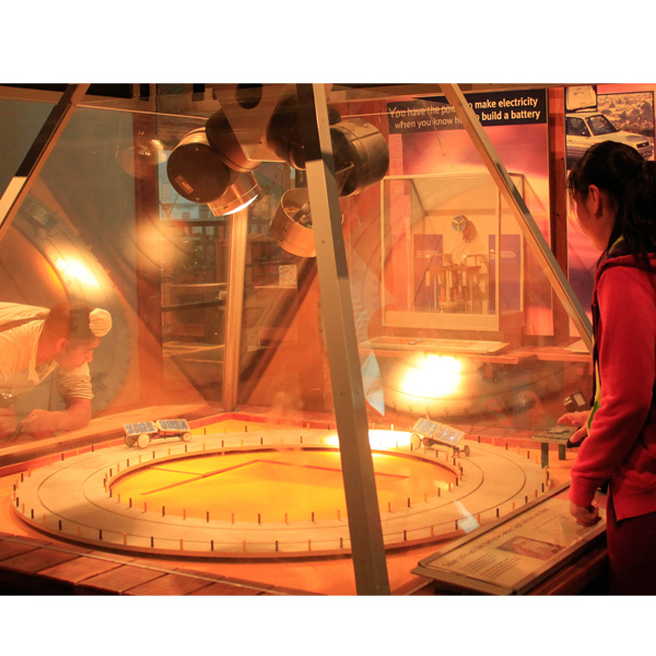 Many of the exhibits exemplify the use of alternative energy in correlation with movement. One such example has two toy carts using reflective solar energy to propel itself around a track.